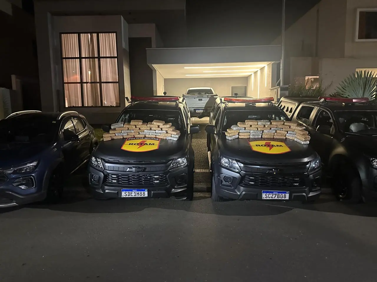 No imóvel, outros cinco suspeitos foram presos, mas o Corolla não foi encontrado. Apesar disso, militares detectaram as peças de skunk em um pneu que já estava com a borracha cortada. A suspeita é que unidades tenham sido vendidas em dias anteriores.