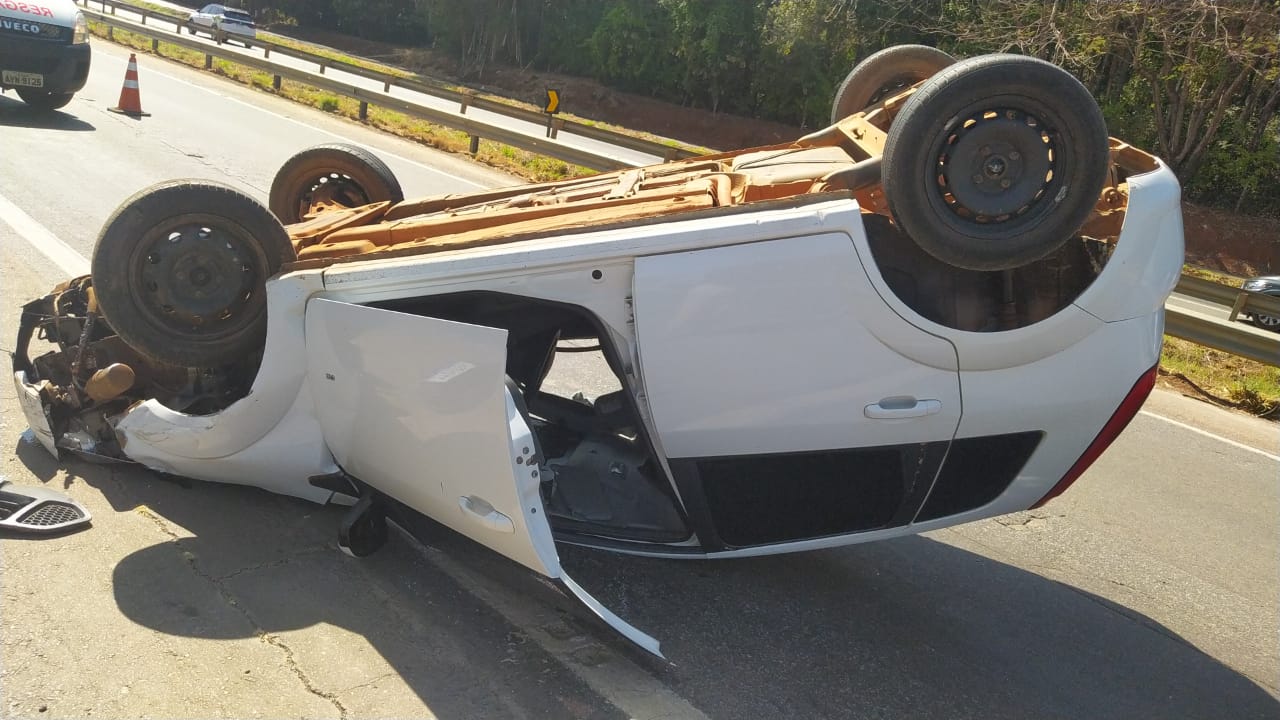 Segundo PRF, acidente aconteceu após veículo bater na traseira de outro carro e capotar na rodovia
