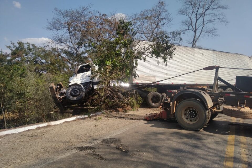 Um acidente deixou duas pessoas mortas na BR-153, em Uruaçu, na região Norte de Goiás. A colisão ocorreu no sábado (28) e envolveu dois caminhões. As vítimas ficaram presas às ferragens e foram a óbito ainda no local.