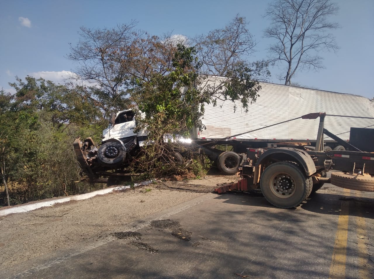 A batida entre os veículos de grande porte aconteceu na “Curva do S”, na zona rural de Uruaçu.