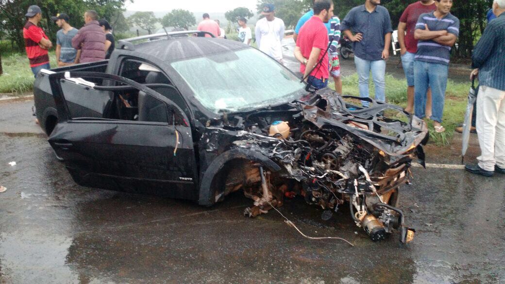 Colisão frontal envolveu uma VW Saveiro e um Fiat Palio, que saíram da pista com o impacto. Outras duas pessoas ficaram feridas