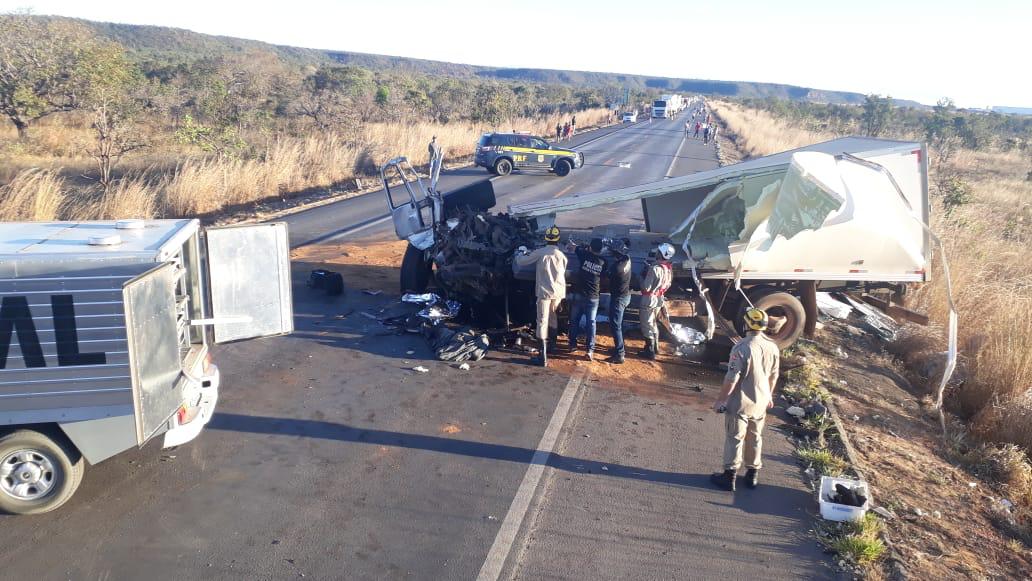 Um grave acidente envolvendo dois caminhões de grande porte resultou na morte de duas pessoas, na BR-020, em Guarani de Goiás, na divisa entre Goiás e Bahia. O caso, que aconteceu na tarde desta sexta-feira (10), também deixou uma terceira vítima com escoriações.