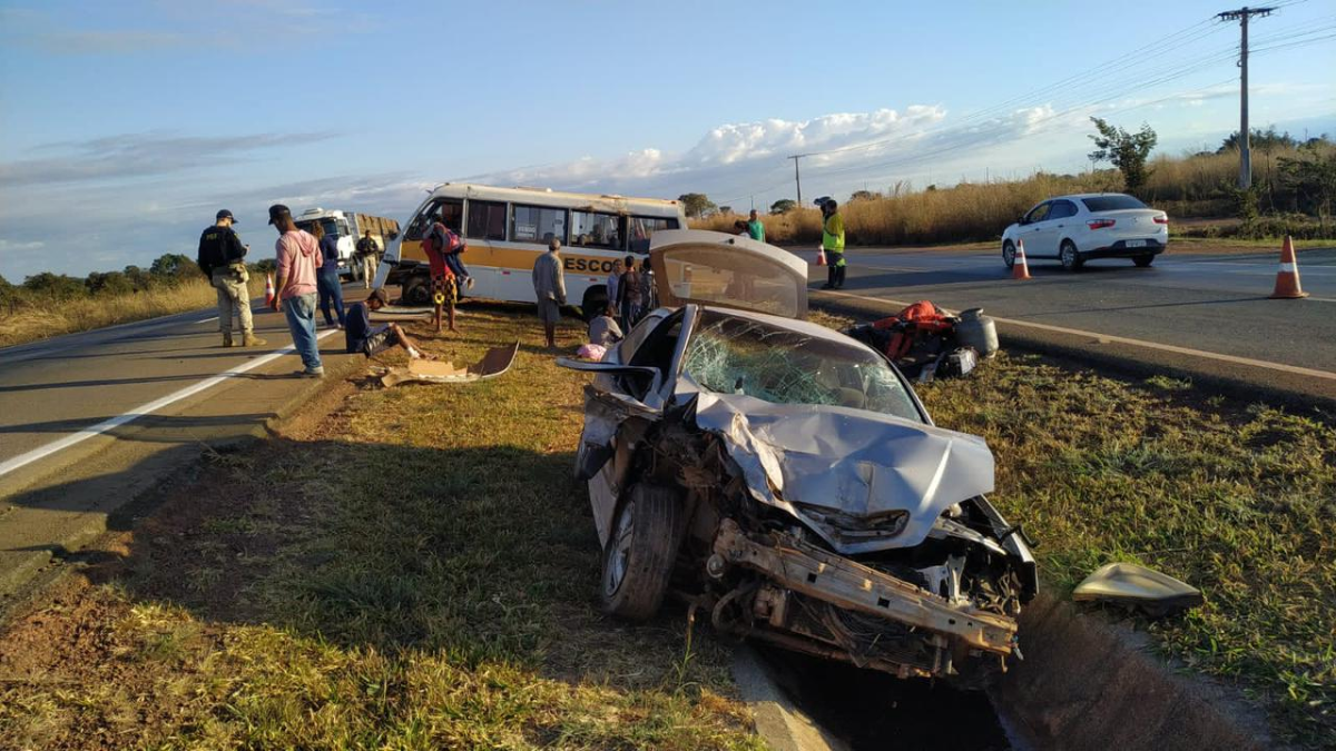 De acordo com a corporação, o motorista do escolar e do carro, cujas identidades não foram reveladas, foram para uma unidade de saúde para receber atendimento médico. A Polícia Rodoviária Federal (PRF) investiga as causas do acidente.