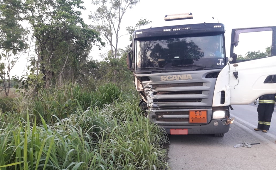 Acidente entre dois caminhões e uma ambulância deixa uma pessoa morta na BR-153