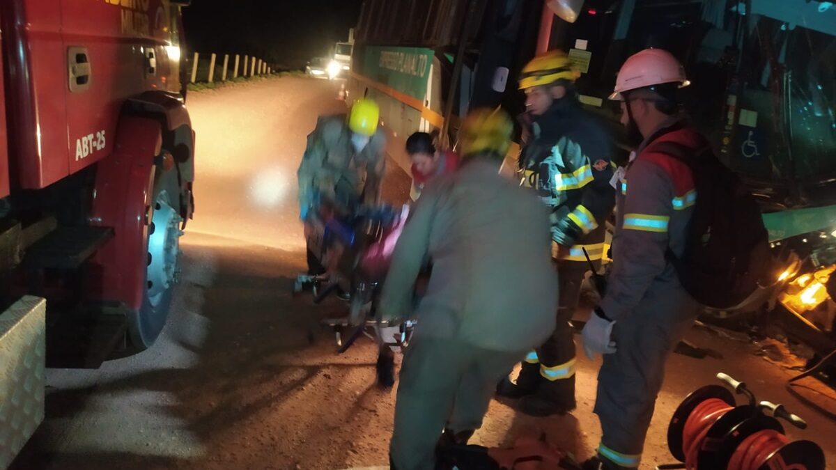 Com apoio do SAMU e da ambulância da empresa, as vítimas do ônibus foram atendidas e transportadas para o Hospital Municipal.