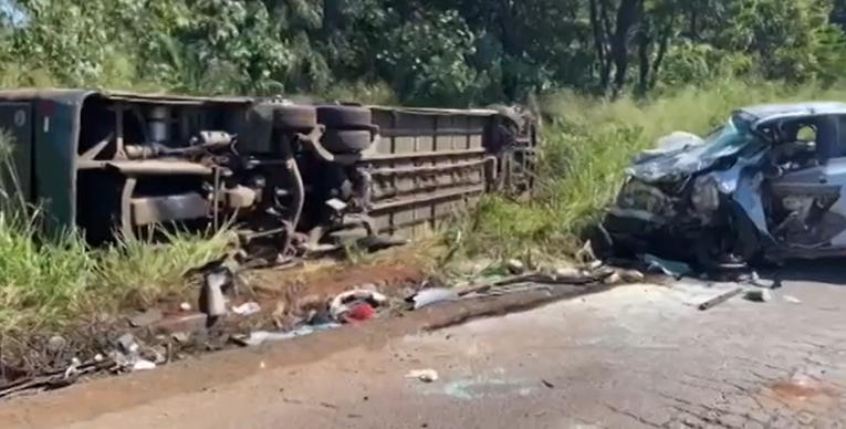 Um acidente entre um ônibus e um carro deixou três mortos e mais de 40…