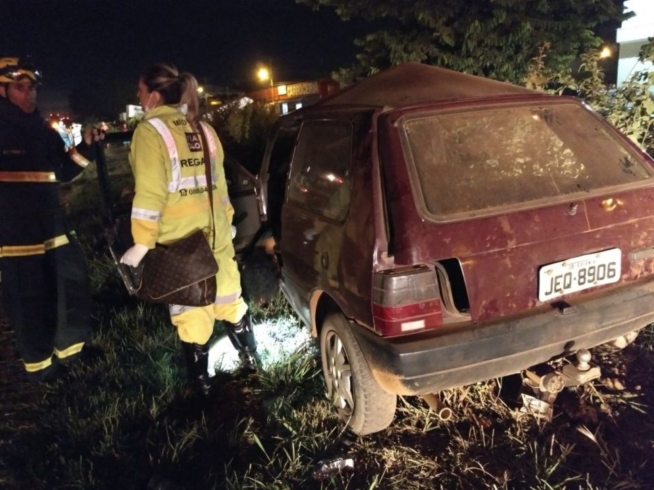 De acordo com a Polícia Rodoviária Federal, o motorista do carro de passeio estava embriagado e teria feiro um retorno proibido por cima do canteiro central