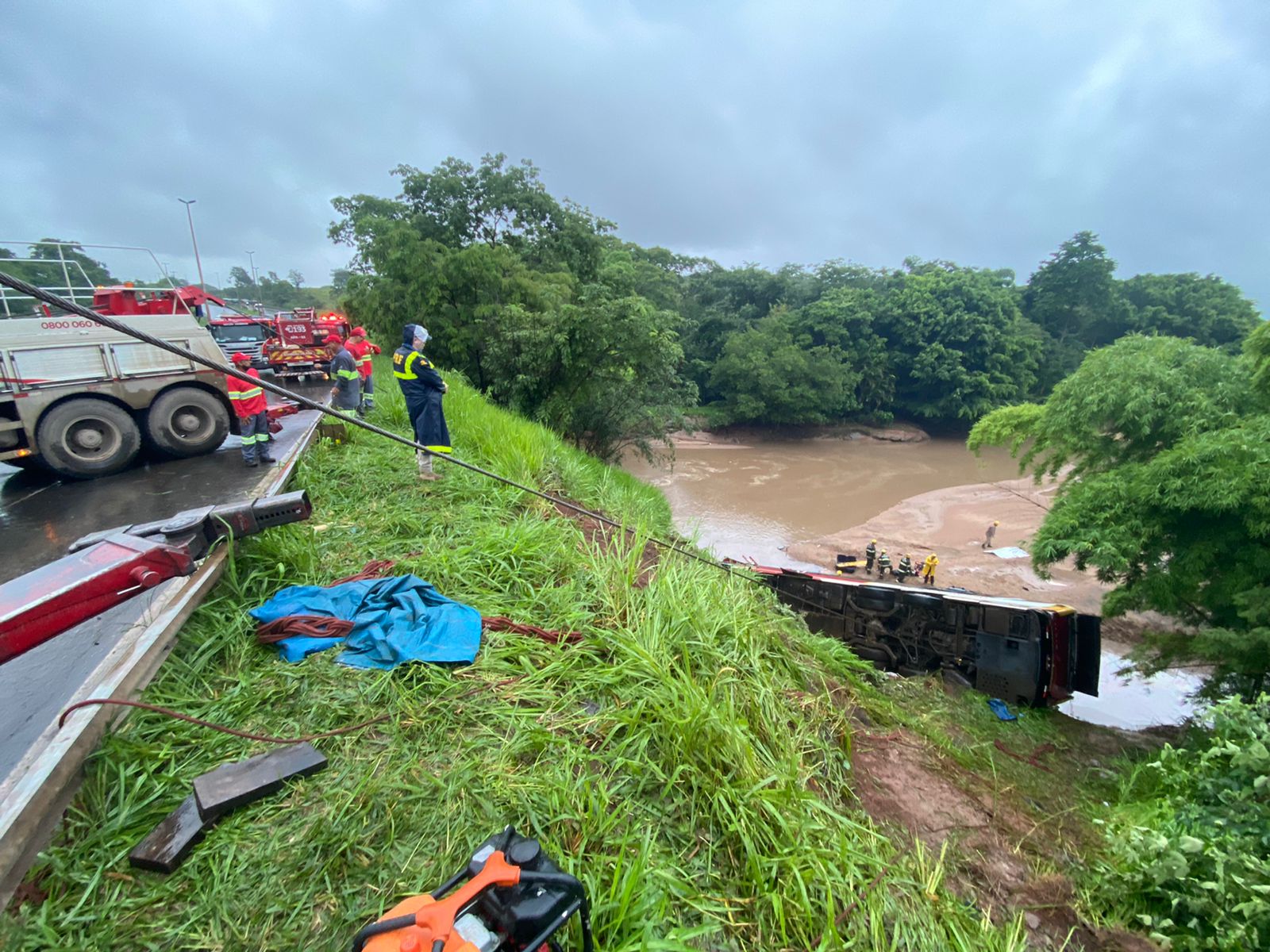 Ônibus da Real Expresso caiu em uma ribanceira após colidir com um caminhão e uma viatura de inspeção da concessionária Triunfo Concebra na BR-153, em Aparecida de Goiânia. Acidente ocorreu na madrugada desta sexta-feira (24), nas imediações do desvio provocado por erosão na rodovia. Cinco ocupantes do ônibus morreram e outros 30 ficaram feridos.