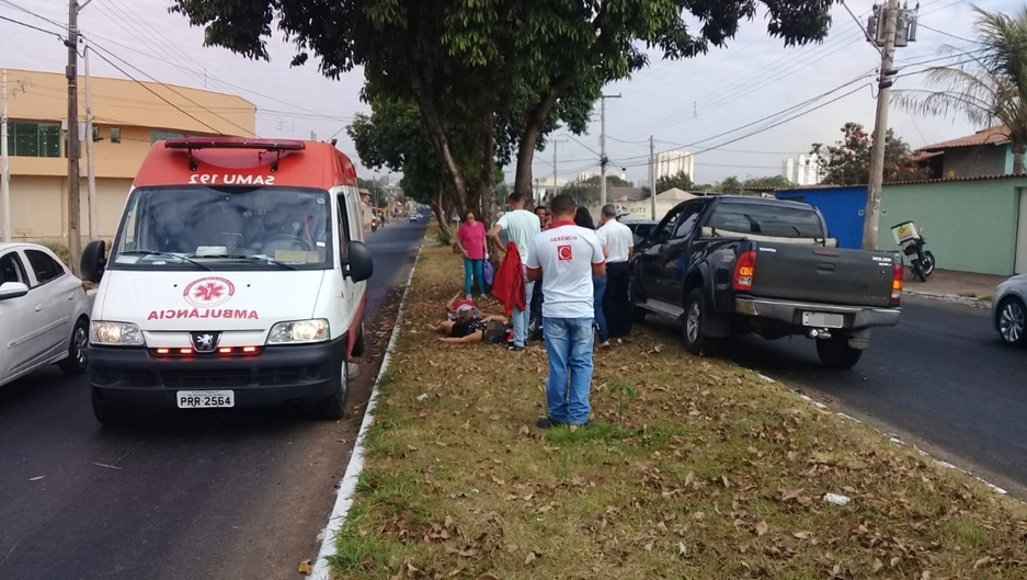 Veículo perdeu o controle ao passar nas frutas caídas na Avenida das Mangueiras. Vítimas foram encaminhadas para o Huapa