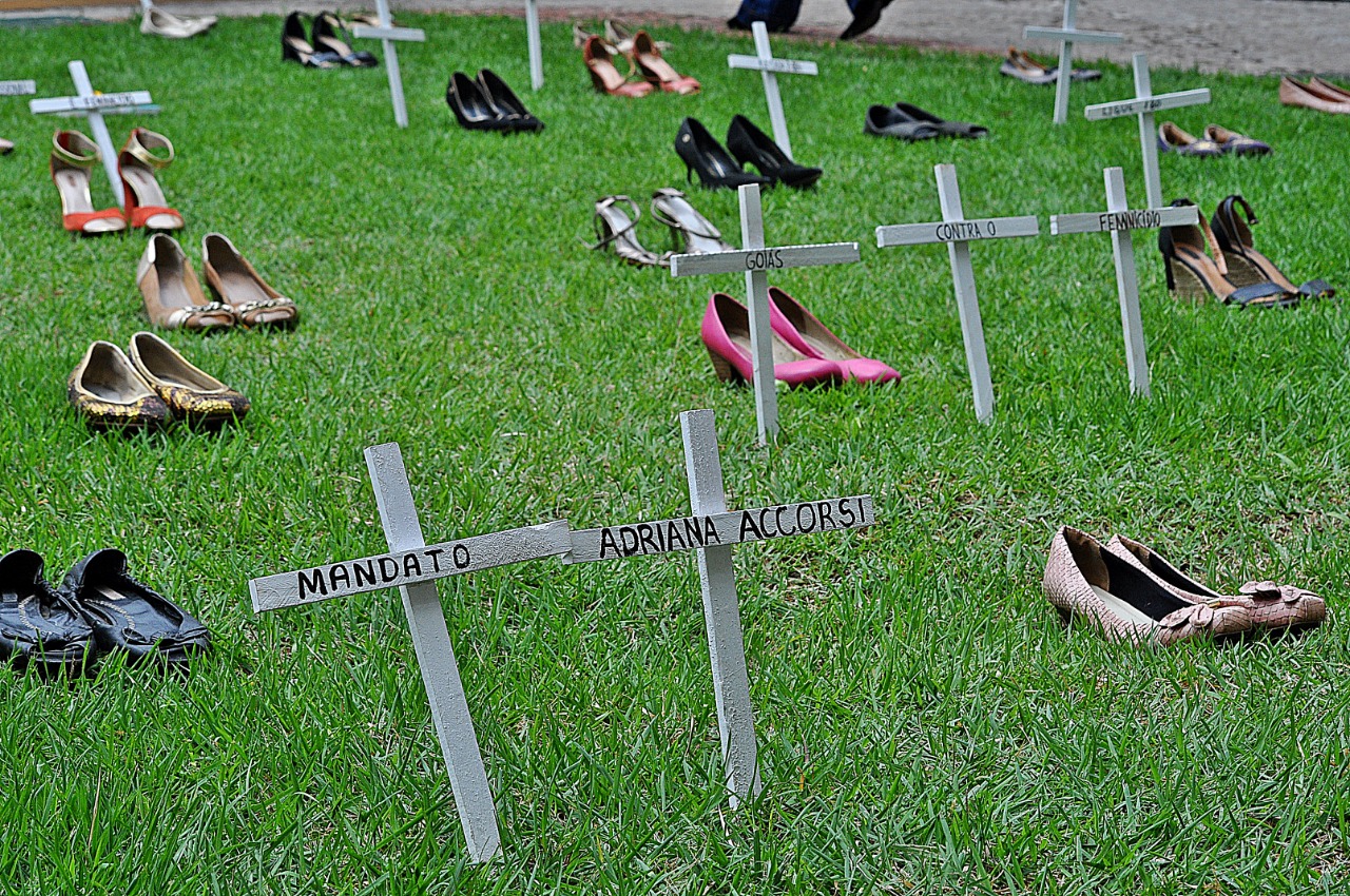 Na Assembleia Legislativa de Goiás, uma instalação denominada “Nenhuma a Menos” ficará em exposição até o dia 30 deste mês. A instalação foi promovida pela deputada estadual Adriana Accorsi (PT) e surgiu do fato de que o feminicídio no estado cresceu 15% em 2018. Foram utilizados 70 pares de sapatos femininos e infantis para compor a instalação.