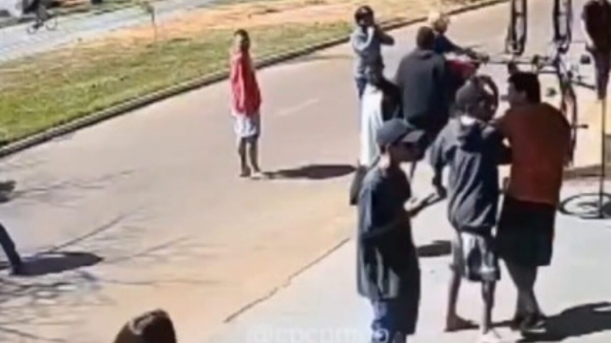 No vídeo gravado pelo circuito de segurança de um estabelecimento é possível ver o momento em que o adolescente ameaça a vítima com um facão. Logo em seguida, ele desfere um golpe. Outras pessoas que estavam no local intervieram para separar os dois, que seguem para a rua.