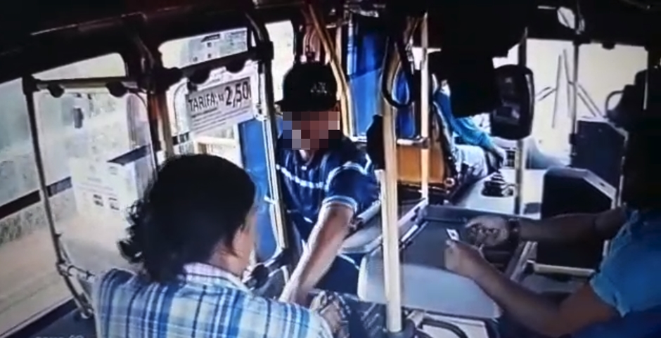 Imagens das câmeras de segurança do ônibus mostram o momento em que o rapaz e os outros dois comparsas ameaçam o motorista, que entrega o celular, e em seguido os jovens pulam a catraca. Em seguida, eles exigem o dinheiro do caixa do cobrador, que é recolhido e colocado na mochila que estava com a mulher.