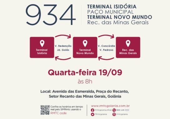 De acordo com a RMTC, a linha 185 será retirada, mas uma nova terá início; a 934 (T. Isidória/Paço Municipal/T. Novo Mundo/R. das Minas Gerais) que tem como principal função ligar as regiões Sudeste e Leste da capital sem a necessidade de integração no Terminal da Bíblia.