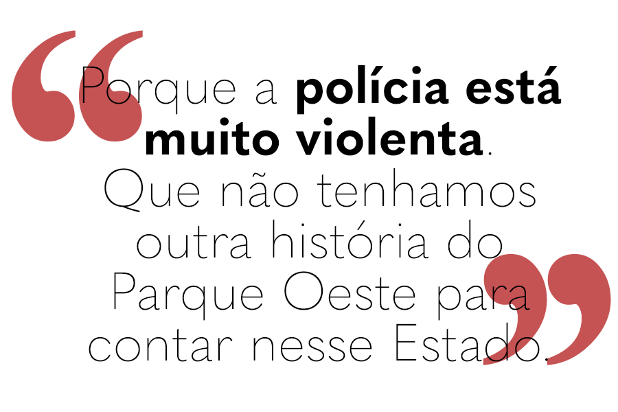 Para ela, muito mais gente pode morrer se a polícia fechar o local. “Porque a polícia está muito violenta. Que não tenhamos outra história do Parque Oeste para contar nesse Estado.” A ocupação está localizada às margens da Avenida Cristus, na Vila Delfiori.