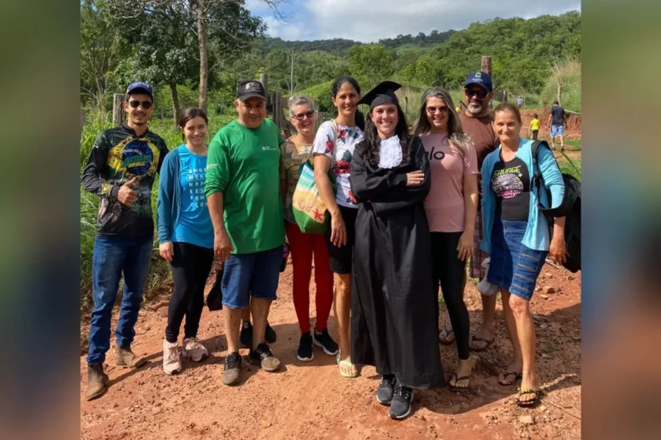 A própria beca também virou parte da aventura. Sem condições de alugar o traje, Darilene decidiu comprar a roupa pela internet. “Fui ver para alugar, mas sairia caro demais. Aí resolvi comprar uma.” Durante o trajeto, no entanto, o laço original da beca ficou na cidade. Como já estavam a cerca de 60 quilômetros do centro urbano, a solução foi improvisar. “Arrumamos uma blusa vermelha e colocamos como se fosse a faixa”, lembra.