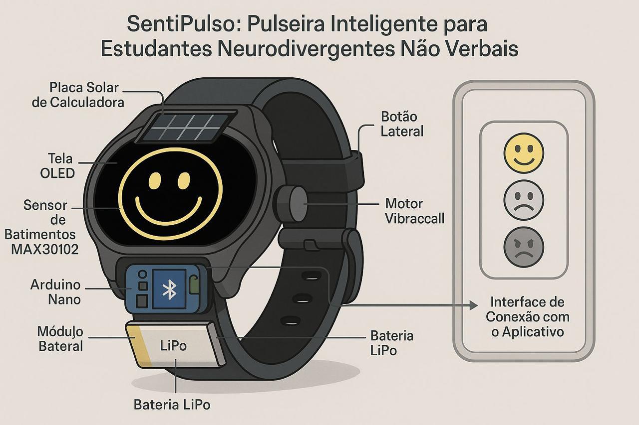 Uma inovação tecnológica, nascida em uma sala de aula da rede pública de Goiás, promete tornar o ambiente escolar mais acolhedor e acessível para estudantes neurodivergentes. Trata-se do Sentipulso, um smartwatch sustentável que identifica estados emocionais e auxilia na autorregulação, desenvolvido por três alunos do Centro de Ensino em Período Integral (Cepi) Dr. Mauá Cavalcante Sávio, em Anápolis.
