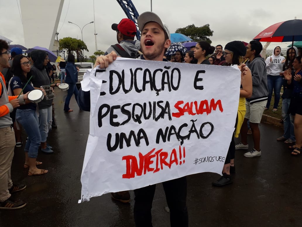 Alunos protestam contra possíveis cortes de verbas à UEG