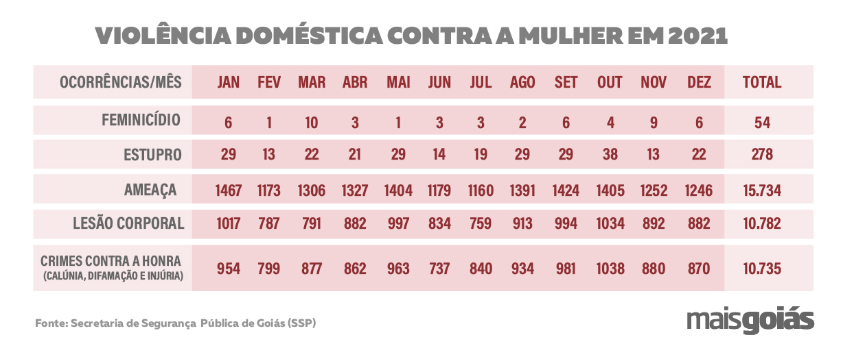 Histórias de mulheres agredidas e que agridem para se defender não são incomuns. Goiás registrou no ano de 2021 um total de 10.782 ocorrências de mulheres vítimas de agressão física. Além disso, também constatou um crescimento de cerca de 17,2% em casos de crimes contra a honra, onde as mulheres são caluniadas, difamadas e injuriadas.