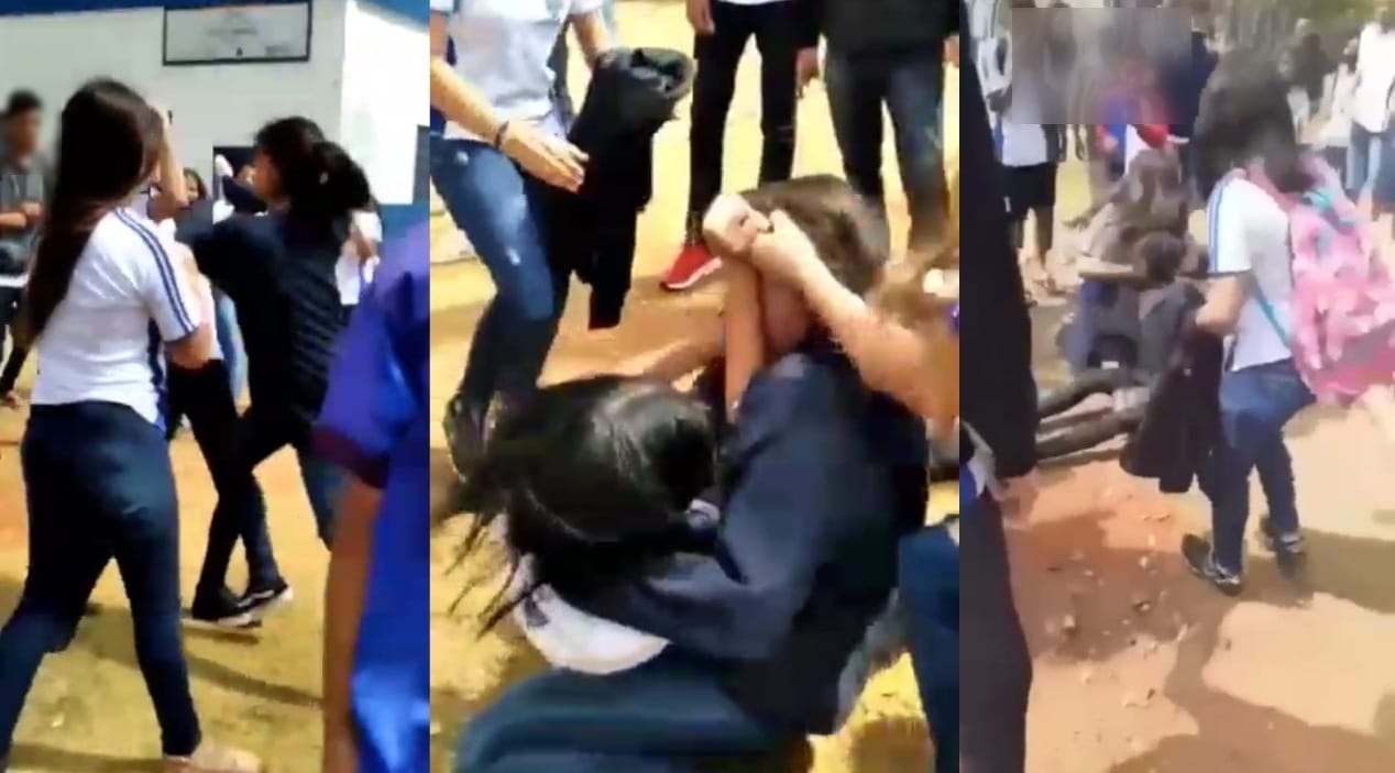 Nas filmagens, as alunas rolam no chão com tapas e puxões de cabelo em uma praça em frente ao Centro de Formação Profissional Miriam Rezende, que fica quadras acima da escola.