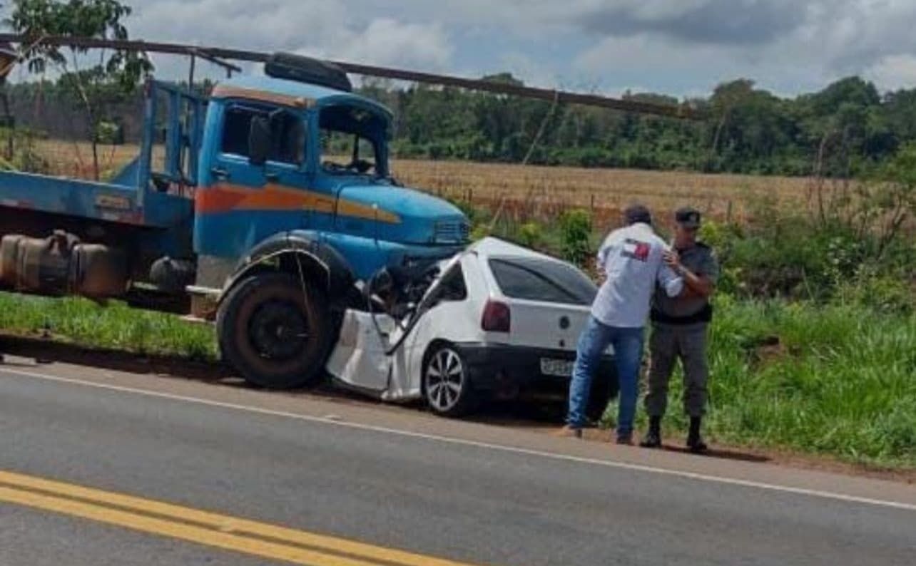 Segundo motoristas, o carro do casal invadiu a pista contrária e colidiu de frente contra um caminhão
