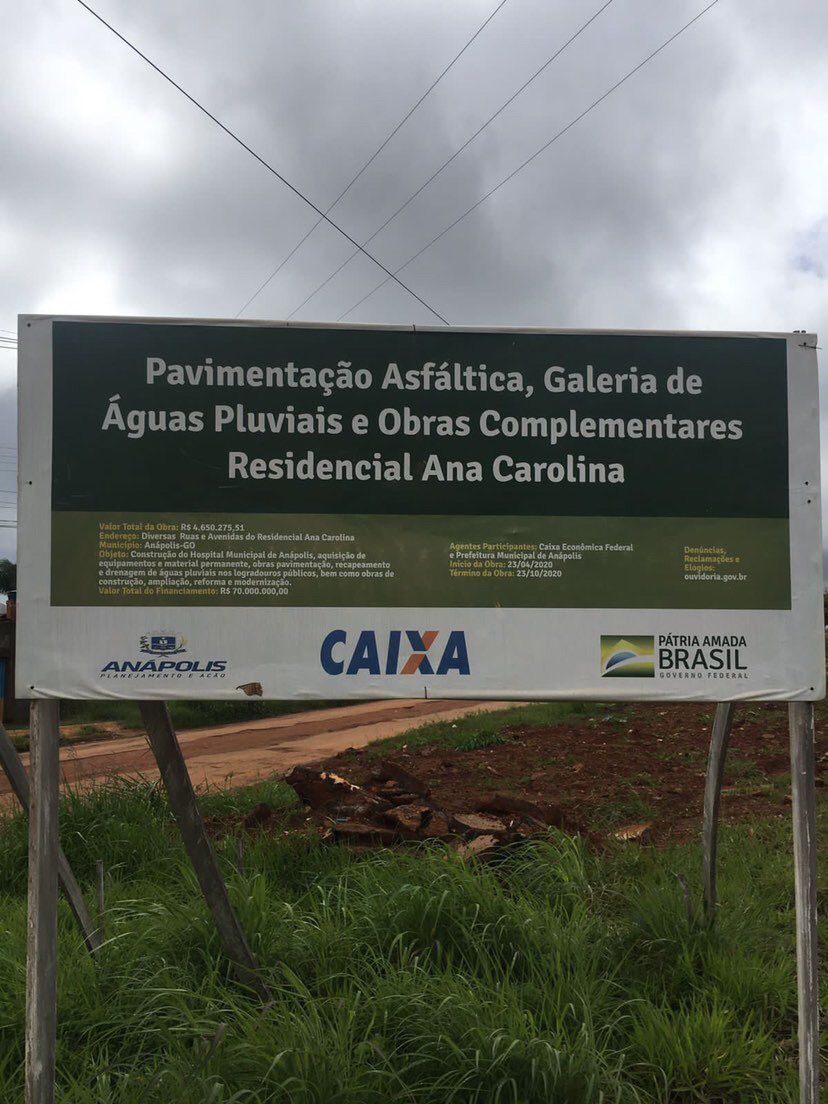 Moradores do residencial Ana Carolina, em Anápolis, denunciam a demora do poder público para finalizar os serviços de Pavimentação Asfáltica, da Galeria de Águas Pluviais e outras obras previstas para o bairro ainda em 2020.