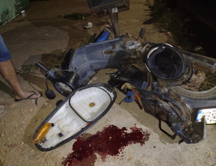 A moto ficou totalmente danificada. O caso foi registrado na Polícia Civil.