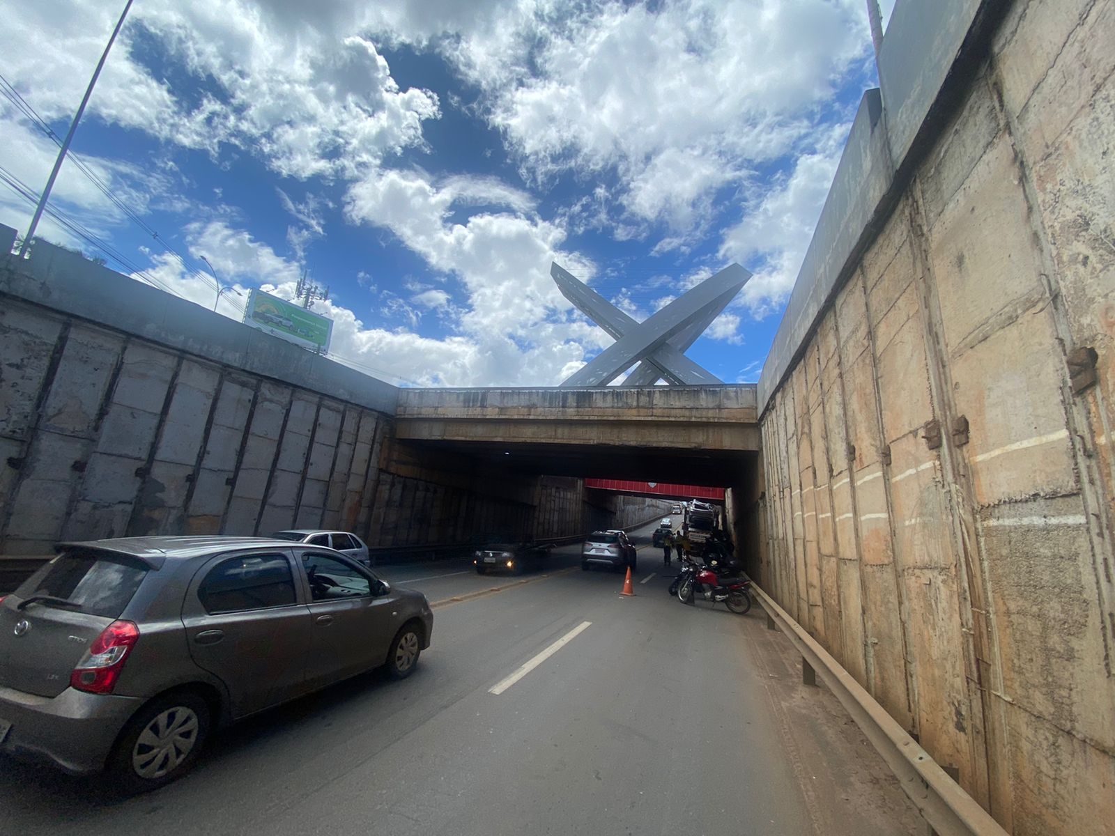Uma placa no início do viaduto Nelson Mandela em Anápolis, indica aos motoristas a altura máxima permitida de 4,5m para os veículos que passam pelo acesso. A falta de atenção ao aviso, pode ser a causa do acidente com o caminhão cegonha, que entalou na estrutura no início da tarde desta quinta-feira (17) na Avenida Brasil Sul, região central da cidade. Geralmente os modelos desses veículos no padrão Brasil têm 4,95m.