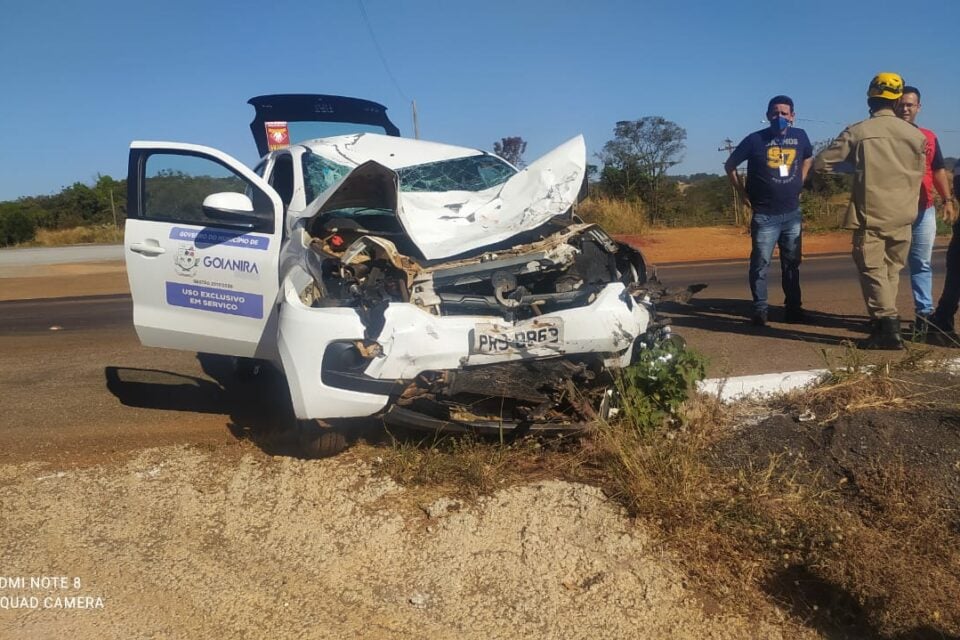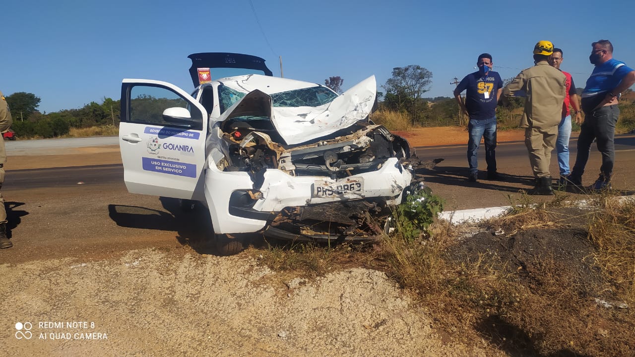 As vítimas estavam em um motocicleta Honda XRE. O carro envolvido na colisão presta serviços para a Prefeitura de Goianira.