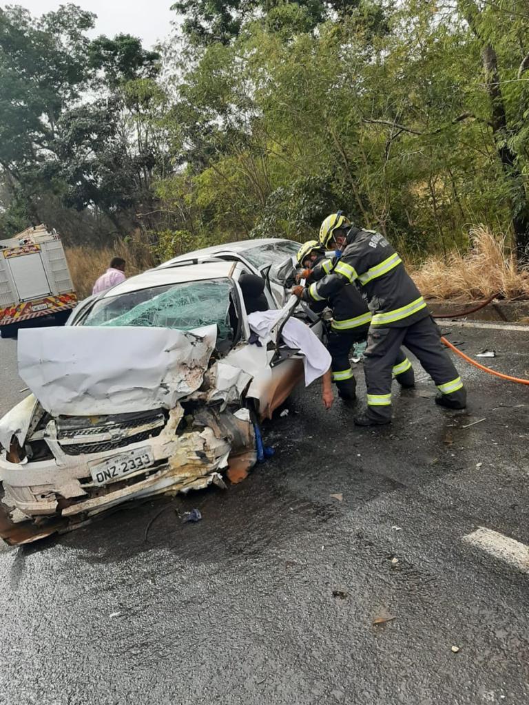 Uma pessoa morreu e outras três ficaram feridas em um grave acidente envolvendo dois carros de passeio na tarde de sábado (7) na rodovia BR-153, zona rural de Jaraguá, sentido Ceres.