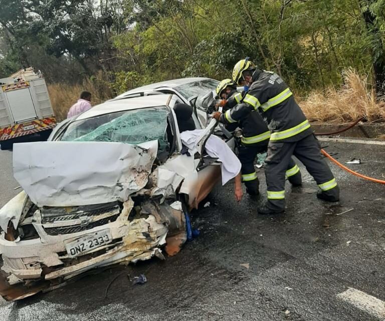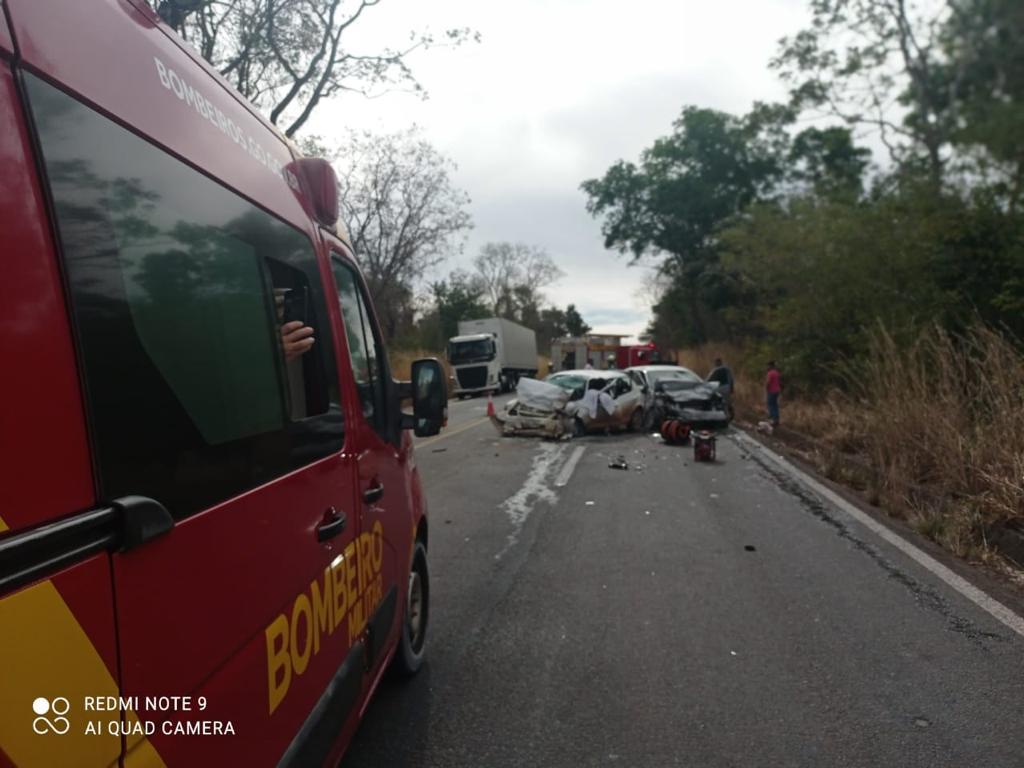 Uma pessoa morreu e outras três ficaram feridas em um grave acidente envolvendo dois carros de passeio na tarde de sábado (7) na rodovia BR-153, zona rural de Jaraguá, sentido Ceres.