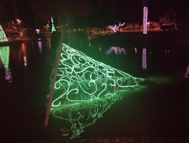 Árvore de Natal flutuante derrubada em Anápolis. (Foto:Reprodução)