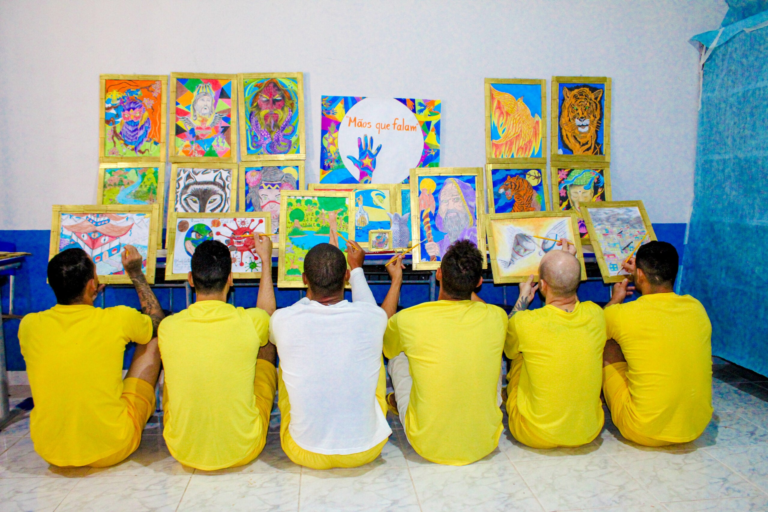 Pinturas e poemas produzidos na cadeia são colocados em exposição, em Anápolis