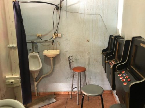 Ao todo 14 equipamentos foram apreendidos. Segundo a PC, a jogatina funcionava em uma sala pequena e um box tipo contêiner, com mictórios abertos e ambientes abafados.