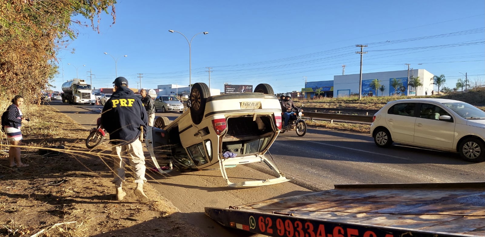 Não houve feridos. O fato mais grave foi o capotamento de um VW Gol com placas de Brasília.