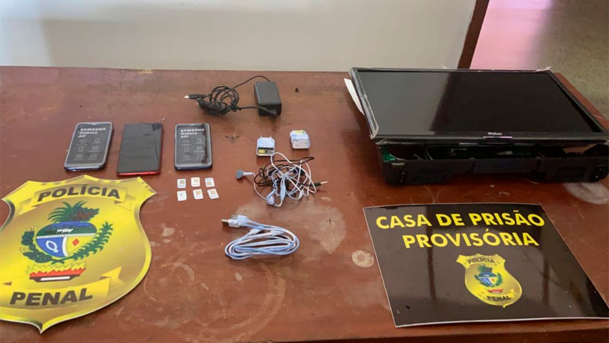 O total de três celulares, seis chips telefônicos, dois carregadores e a televisão onde os aparelhos estavam escondidos foram apreendidos.
