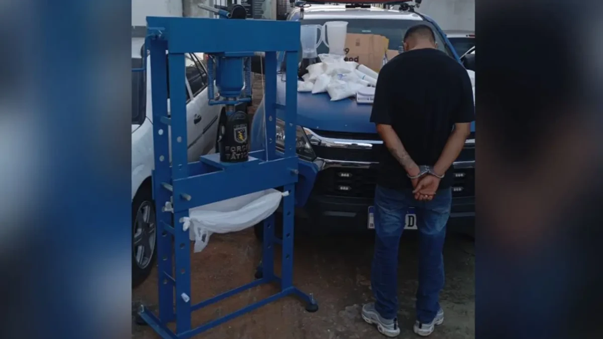No imóvel, os policiais encontraram grande quantidade de cocaína, avaliada em cerca de R$ 1,2 milhão, além de uma prensa hidráulica, insumos e diversos materiais usados na produção e distribuição do entorpecente. Ainda de acordo com a corporação, a casa não possuía móveis, o que indica que o local era utilizado exclusivamente como laboratório e “central” de entregas.