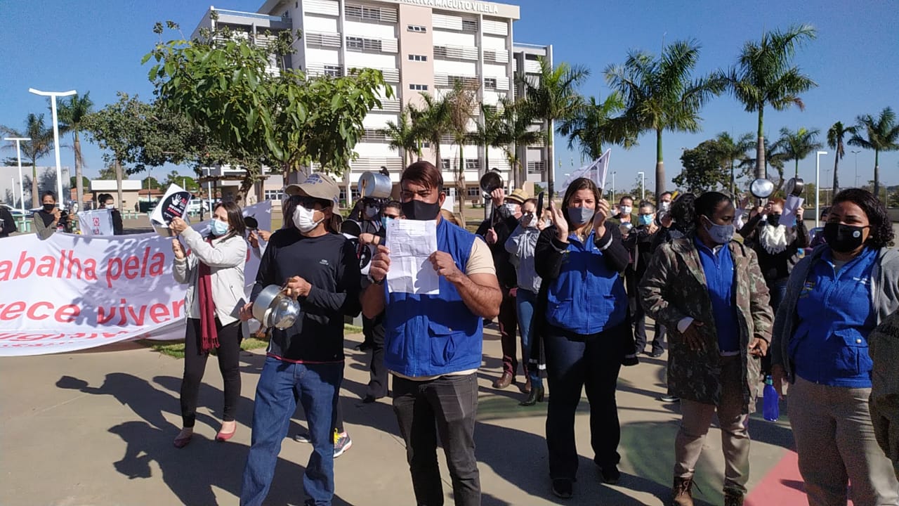 Os servidores da rede municipal de Saúde de Aparecida de Goiânia realizaram uma manifestação na manhã desta quarta-feira (30), em frente ao prédio da prefeitura, no Residencial Solar Park. O protesto com “panelaço” se deu pela insatisfação dos servidores com as tentativas de negociações com a gestão municipal.