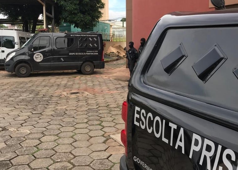 Médium chegou escoltado ao prédio do MP (Foto: Thaís Lobo/Mais Goiás)
