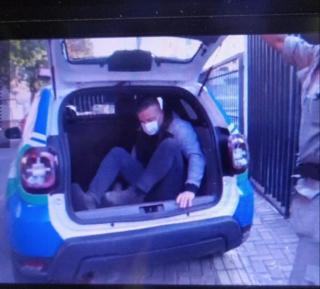 Fotos mostram o momento em que Ricardo Hilgenstieler, ex namorado da apresentadora, é colocado em um carro de polícia, após a agressão.