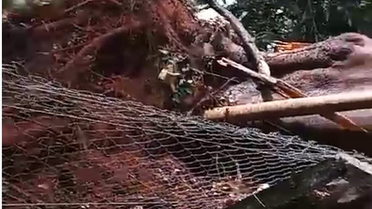 Vídeo gravado pelo vendedor que trabalha no local, mostra que a árvore atingiu em cheio o quiosque. As imagens mostram que a planta também arrebentou a fiação e ocupou toda a rua.