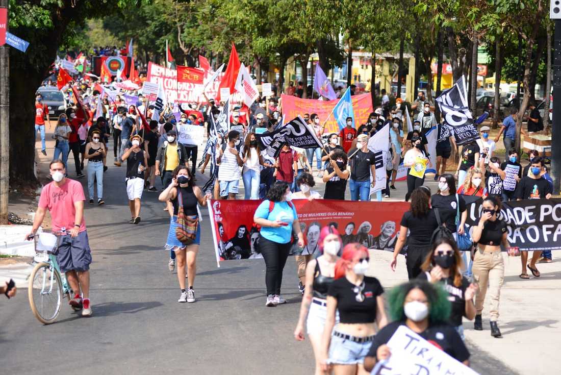 O ato contra o governo de Jair Bolsonaro e a favor da vacinação contra a Covid-19 já reúne cerca de mil pessoas na manhã deste sábado (29), em Goiânia, segundo uma das organizadoras do evento. Usando máscaras de proteção, os manifestantes acabam de chegar à Praça do Trabalhador, fim do itinerário, no Setor Central.