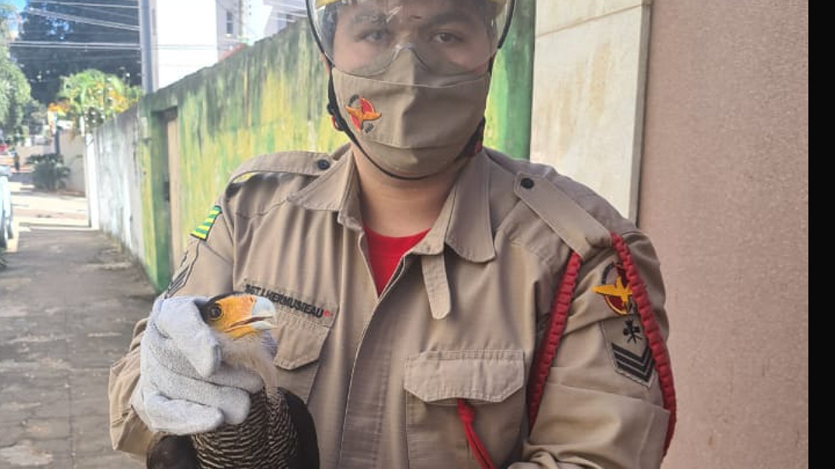 O Corpo de Bombeiro resgatou uma ave rapina na manhã de sábado (24), no Setor Pedro Ludovico, em Goiânia. De acordo com informações da corporação, o animal é um carcará.