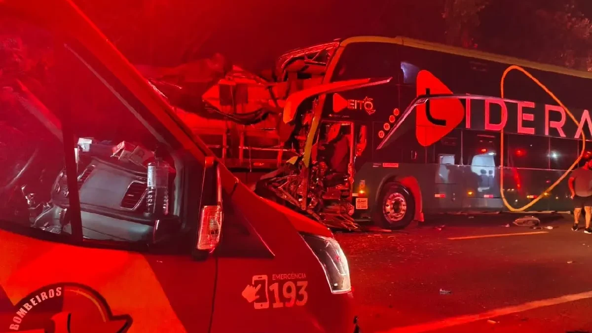 Batida traseira entre a carreta e o ônibus envolveu 51 pessoas, teve vítimas presas entre às ferragens, mas não houve mortes