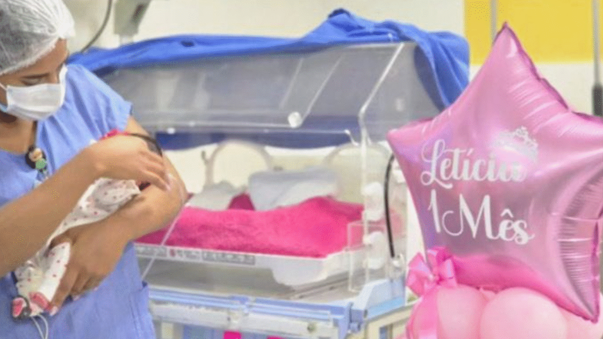 Em uma publicação nas redes sociais no último domingo (28), a Santa Casa se referiu à bebê como “um dos nossos milagres” e celebrou seu primeiro mês de vida. As imagens divulgadas mostram Letícia com um macacão estampado de corações e um laço vermelho na cabeça, cercada pelos profissionais que acompanharam sua trajetória desde o nascimento.