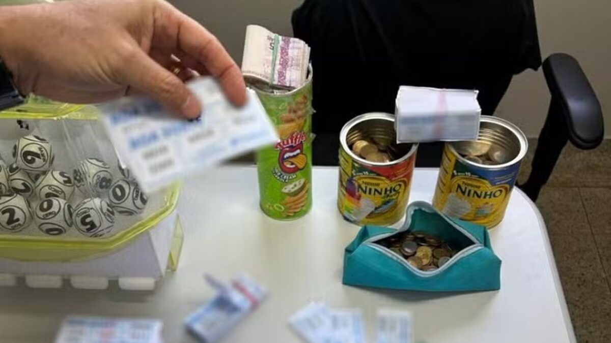 Foram apreendidos um globo para sorteio, bilhetes seriados, e uma quantia de dinheiro em espécie