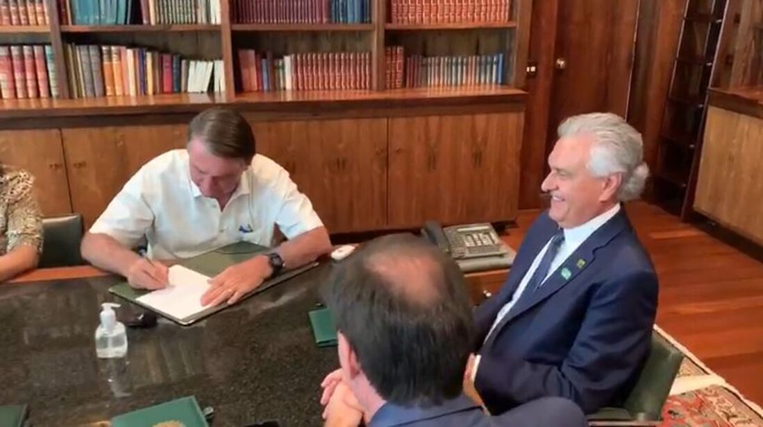 Bolsonaro assina adesão de Goiás ao RRF com elogios a Caiado
