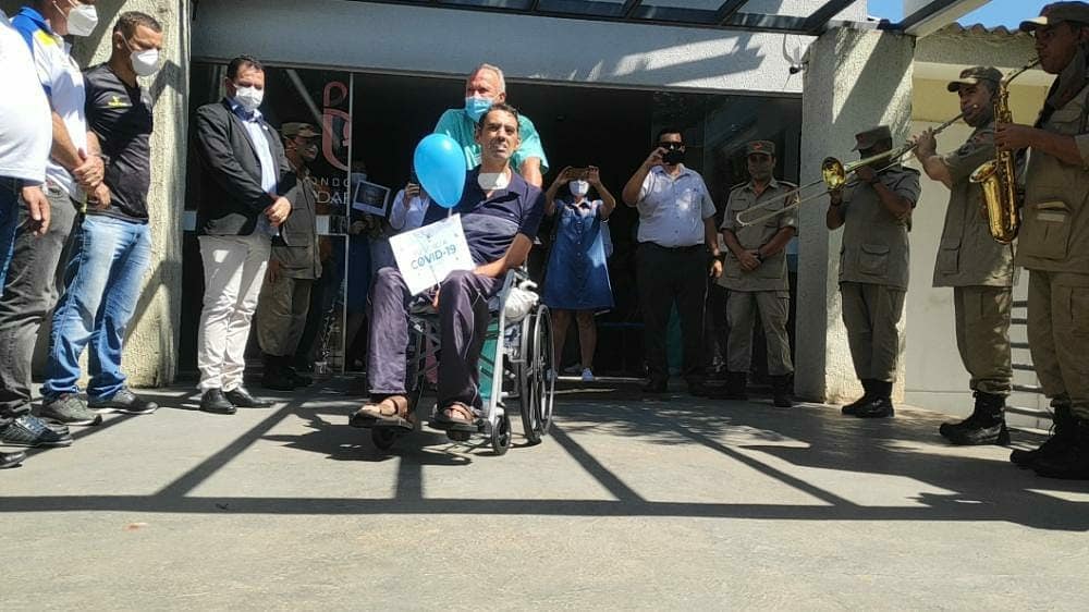 Após 47 dias de internação, o 2º tenente do Corpo de Bombeiros, Moisés Rodrigues de Oliveira, recebeu alta do tratamento contra Covid-19 na última sexta-feira (16), em Goiânia. O militar, que faz parte da reserva remunerada, chegou a ficar intubado por 19 dias, com 80% dos pulmões comprometidos. Com a recuperação, ele foi recebido com emoção ao som da Banda Sinfônica da corporação.
