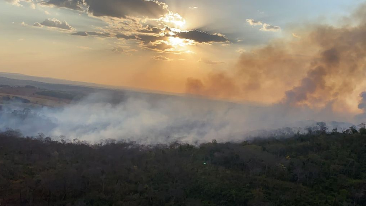Neste momento, o Corpo de Bombeiros de Goiás (CBM-GO) combate um incêndio em vegetação no Parque Estadual Altamiro de Moura Pacheco (PEAMP). As equipes fizeram três frentes para combater o fogo nesta terça (7). Segundo a corporação, são oito viaturas e 40 bombeiros militares atuando no local.