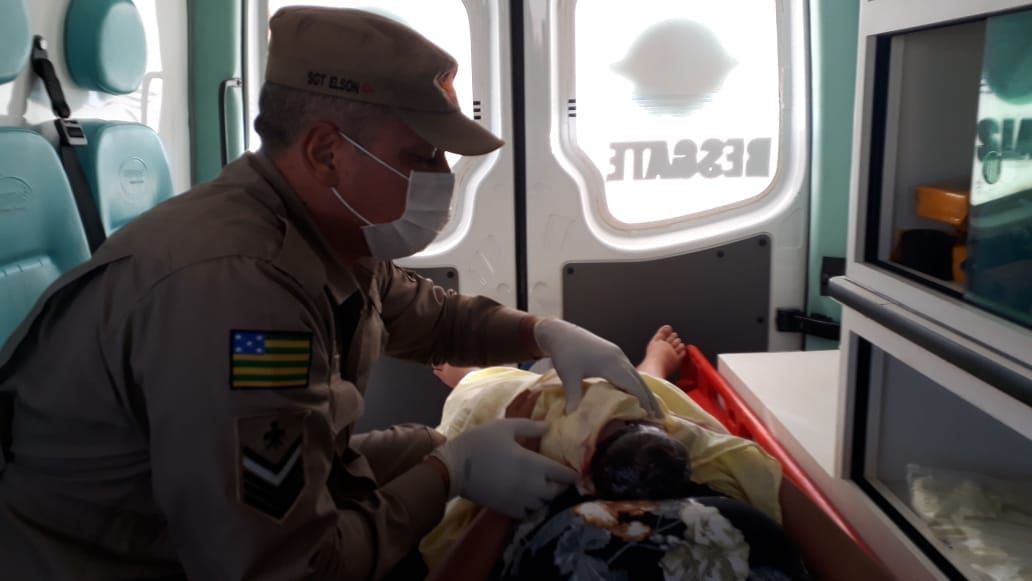 Bombeiros do 13° Batalhão de Jataí foram acionados para atender uma mulher que iniciou trabalho de parto em sua residência, no setor Mauro Bento, parte alta da cidade. No local, os homens avaliaram que a bolsa amniótica da mãe Ana Carla Berthochi Lima (31) havia estourado e seria mais adequado realizar o parto lá mesmo, no sofá da sala.