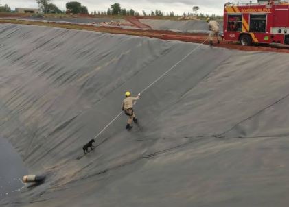 Bombeiros resgatam cachorros de tanque de chorume em São Luís dos Montes Belos
